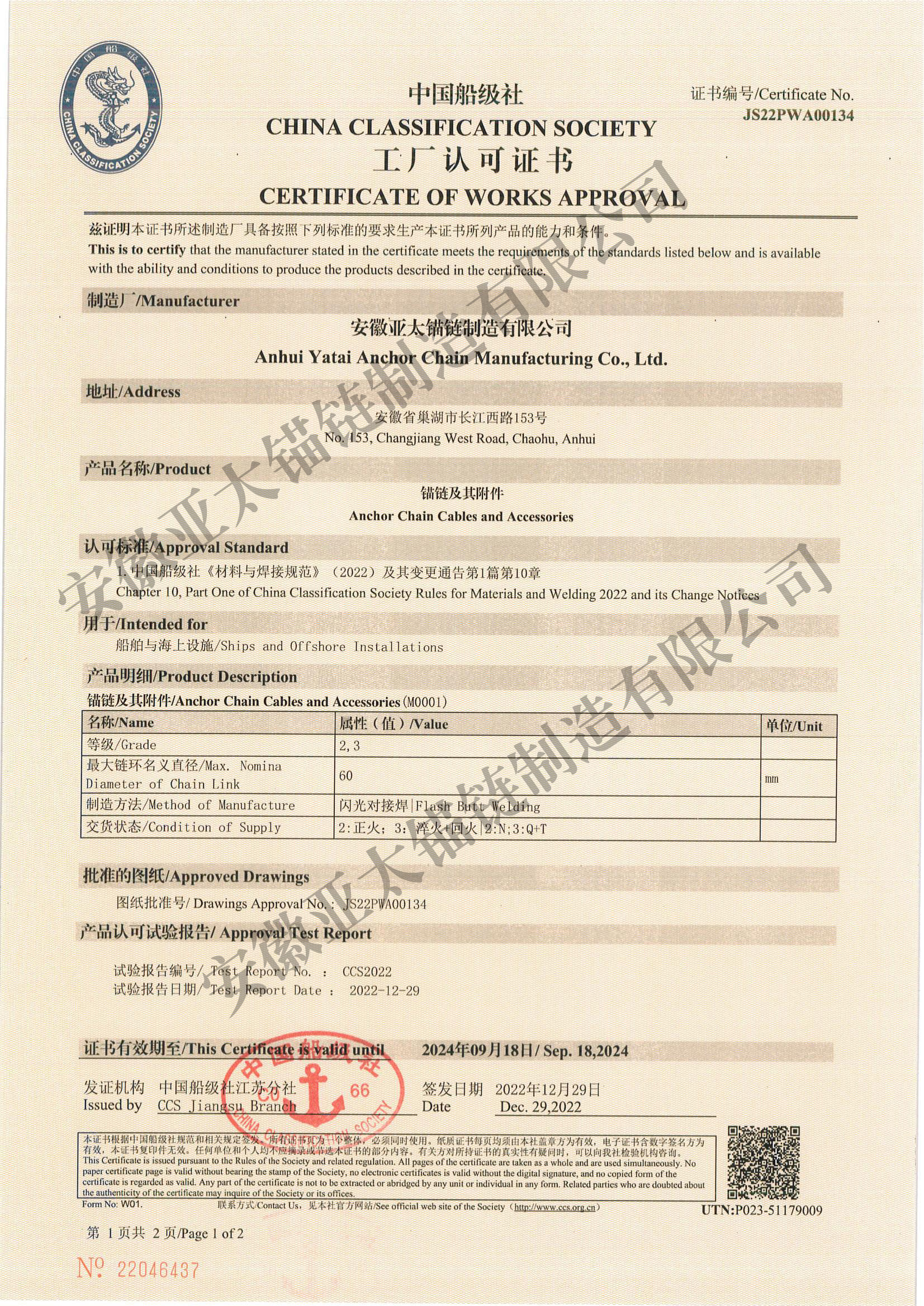 安徽亞太錨鏈制造有限公司是國(guó)家高新技術(shù)企業(yè),也是國(guó)家GB/T 549-2017《電焊錨鏈》標(biāo)準(zhǔn)的起草和制定單位之一。公司旗下設(shè)有錨鏈分廠(chǎng)、浮標(biāo)分廠(chǎng)、舾裝件分廠(chǎng)等多個(gè)分廠(chǎng)。公司專(zhuān)業(yè)從事φ12.5mm-φ107mm二、三級(jí)船用錨鏈、浮標(biāo)錨鏈、錨鏈附件,錨、船舶曬裝產(chǎn)品、航標(biāo)、系船浮、船型標(biāo)、多種規(guī)格海洋監(jiān)測(cè)浮標(biāo)及航標(biāo)燈等產(chǎn)品的生產(chǎn)、安裝和服務(wù)。目前公司的產(chǎn)品銷(xiāo)往全國(guó)各地船廠(chǎng)、碼頭、航標(biāo)處、航道局、海洋局,并已走上國(guó)際市場(chǎng),如東南亞、中東、歐美等國(guó)家。